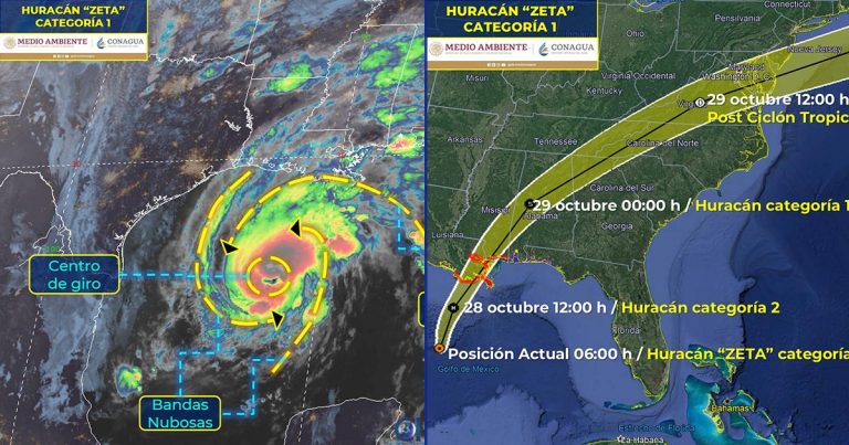 Ciudad de México.- Tras intensificarse nuevamente a huracán categoría 1, Zeta se localiza actualmente a 565 kilómetros al nor-noroeste de Progreso, Yucatán, y a 430 kilómetros al suroeste de la desembocadura del Río Mississippi, en Estados Unidos. De acuerdo con información del Servicio Meteorológico Nacional, el fenómeno se desplaza sobre el Golfo de México hacia … Sigue leyendo Huracán Zeta se dirige a Estados Unidos