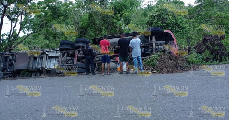 Papantla, Ver.- Aparatoso accidente se registró la mañana de este martes sobre la carretera Poza Rica-María de la Torre, en las inmediaciones de la localidad San Andrés, cuando un tráiler volcó sobre uno de sus costados, luego de que el conductor huyera de delincuentes que le perseguían. Fue durante la mañana de este martes cuando … Sigue leyendo Huye de delincuentes y termina volcando