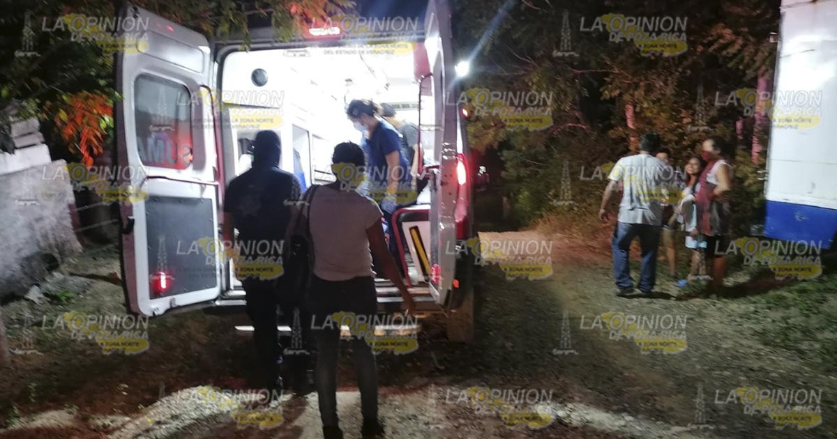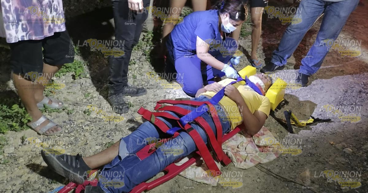 Tuxpan, Ver.- Joven obrero que se dirigía a su domicilio a bordo de una motocicleta sufrió un accidente y tuvo que ser auxiliado por paramédicos y posteriormente hospitalizado; familiares evitaron que las autoridades de vialidad intervinieran al retirar la unidad de la zona del percance.