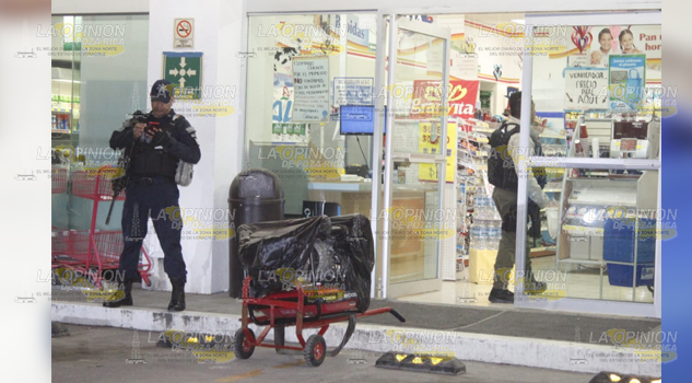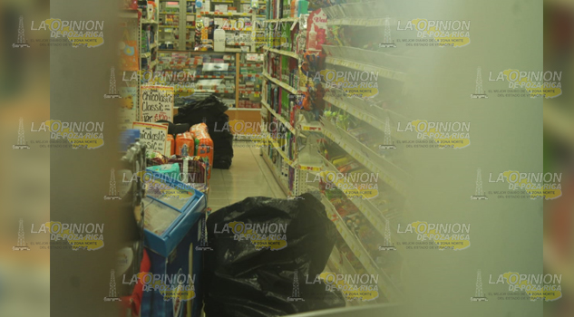 Al lugar arribaron elementos policíacos quienes informaron que los amantes de lo ajeno, huyeron por la calle Moctezuma lográndose llevar fuerte suma de dinero, pero dejaron toda la mercancía que ya tenían en 4 bolsas negras, así como 2 plantas de luz que no lograron robar dejándolas en la entrada de la farmacia.