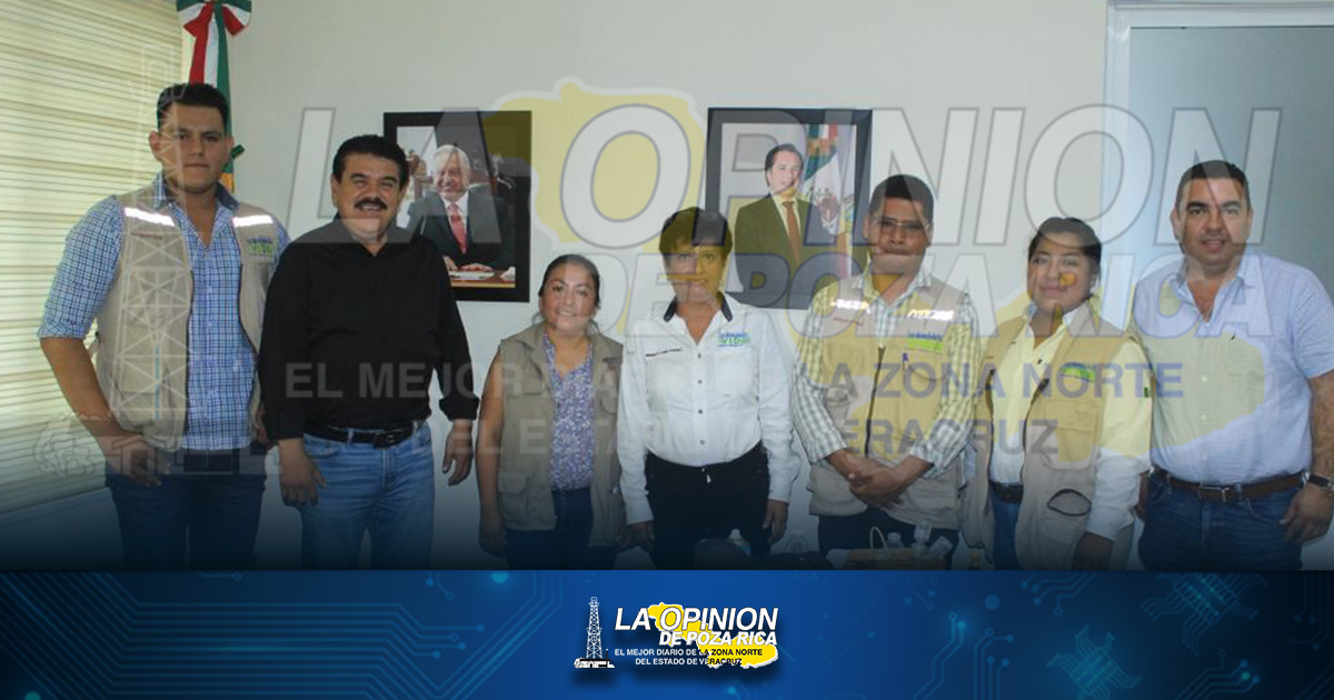 Tihuatlán, Ver.- Con el propósito de detonar la economía familiar y el sector agroforestal, este día el alcalde Leobardo Gómez González y el regidor comisionado en Fomento Agropecuario, José Norberto Aguirre Orellán, se reunieron con Lourdes Martínez Bautista, coordinadora territorial y personal del programa federal «Sembrando vida» de la Secretaría del Bienestar, quienes se encuentran operando en el municipio.