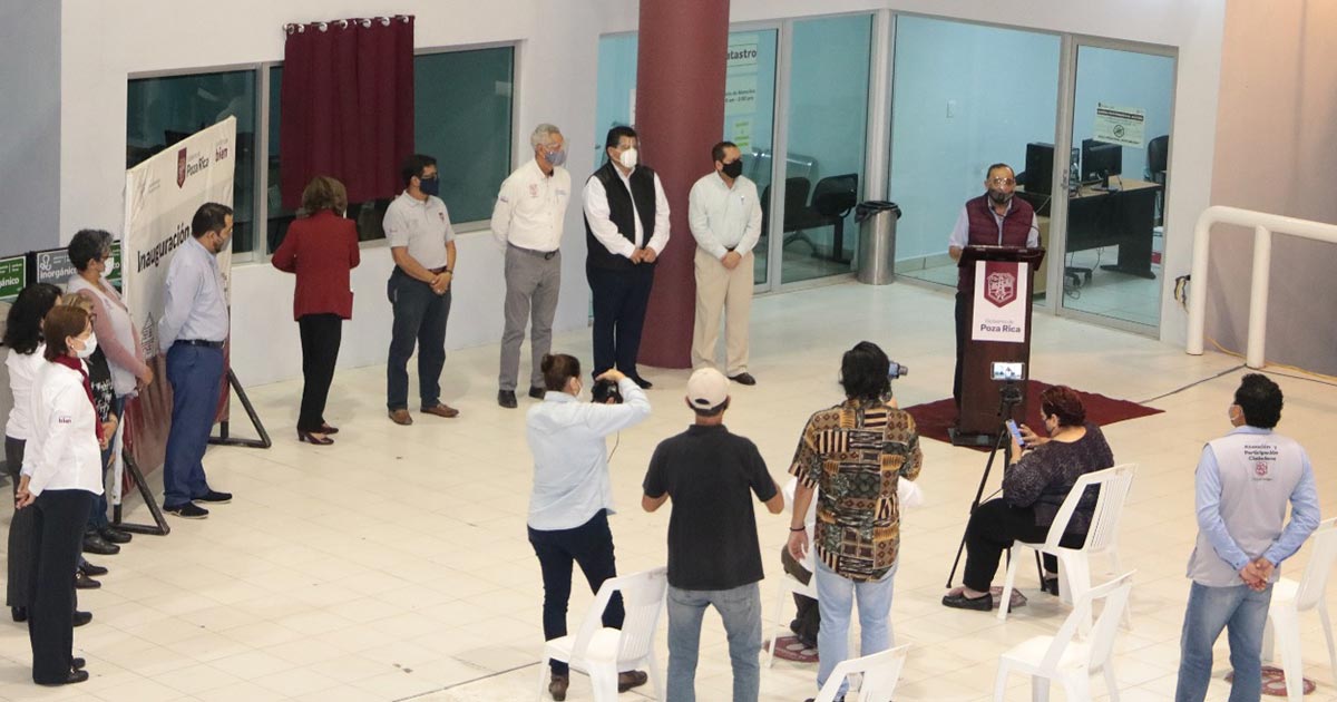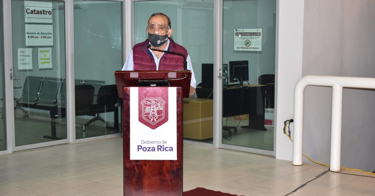 Poza Rica, Ver.- Este Gobierno se ha empeñado en mejorar las condiciones en que se atiende a la ciudadanía, buscando la mejora continua de sus funciones, expresó el munícipe Francisco Javier Velázquez Vallejo, al dar por inaugurada la ampliación de las oficinas de catastro, mismas que permitirán a los usuarios que tengan la necesidad de acudir a estas instalaciones a realizar un trámite, encuentren un ambiente digno y adecuado a sus demandas y necesidades.
