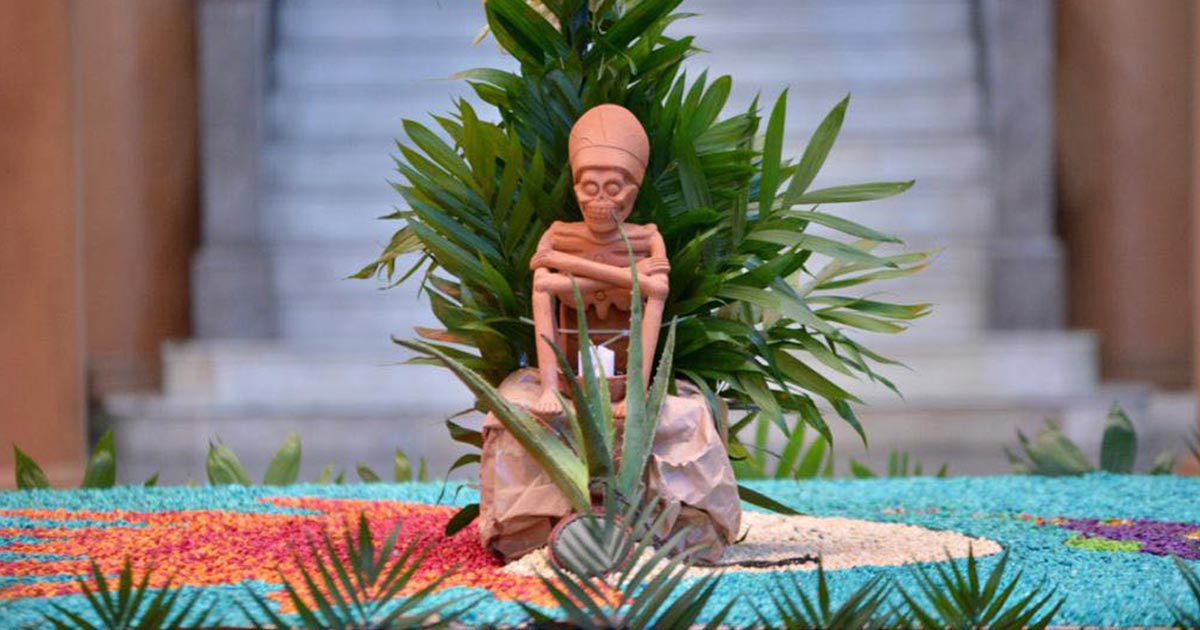 “Hoy inauguramos el altar de Palacio de Gobierno siguiendo las tradiciones del Día de Muertos. En esta ocasión, quisimos basarlo en las características prehispánicas con que se montaban estos altares, que contenían varios aspectos de las concepciones de la vida y la muerte de los Mexicas” se lee en la red social de García Jiménez.