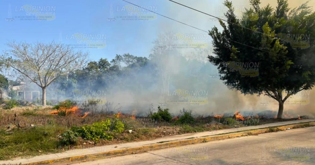 Álamo, Ver. – Un incendio presentado en un lote baldío de la colonia Gabino Gonzales causo alerta entre vecinos de esta zona la mañana de este día, luego de que el predio ardiera en llamas, por varios minutos, situación que causo la movilización del cuerpo de bomberos y elementos de Protección Civil, quienes arribaron a la zona para sofocar las llamas.