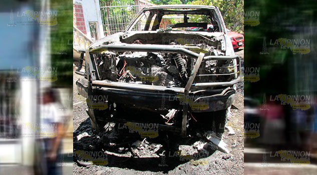 Álamo, Ver.- Un extraño incendio consumió en su totalidad una camioneta de doble cabina y dañó severamente un automóvil que se encontraba a su lado, mientras ambos vehículos se encontraban estacionados en el interior de un domicilio localizado en el ejido La Unión, poco después del mediodía de este sábado.