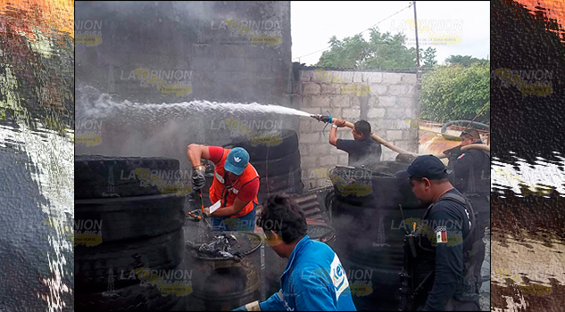 Venustiano Carranza, Pue.- Presunto corto circuito en el cableado dentro de una pequeña bodega de llantas usadas y tambores, desencadenó un incendio que alertó a los vecinos aledaños, quienes de inmediato llamaron a Protección Civil y a la Policía Municipal.