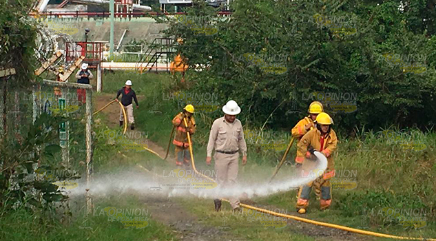Incendio de pastizal sobre las instalaciones de Pemex a la altura del campo #2 ubicado sobre la carretera Poza Rica-Papantla, causó pánico ya que las llamas amenazaban con llegar a dichas instalaciones siendo sofocado por el mismo personal de contraincendio quienes tuvieron que hacer uso de dos vehículos para poder controlar el fuego.