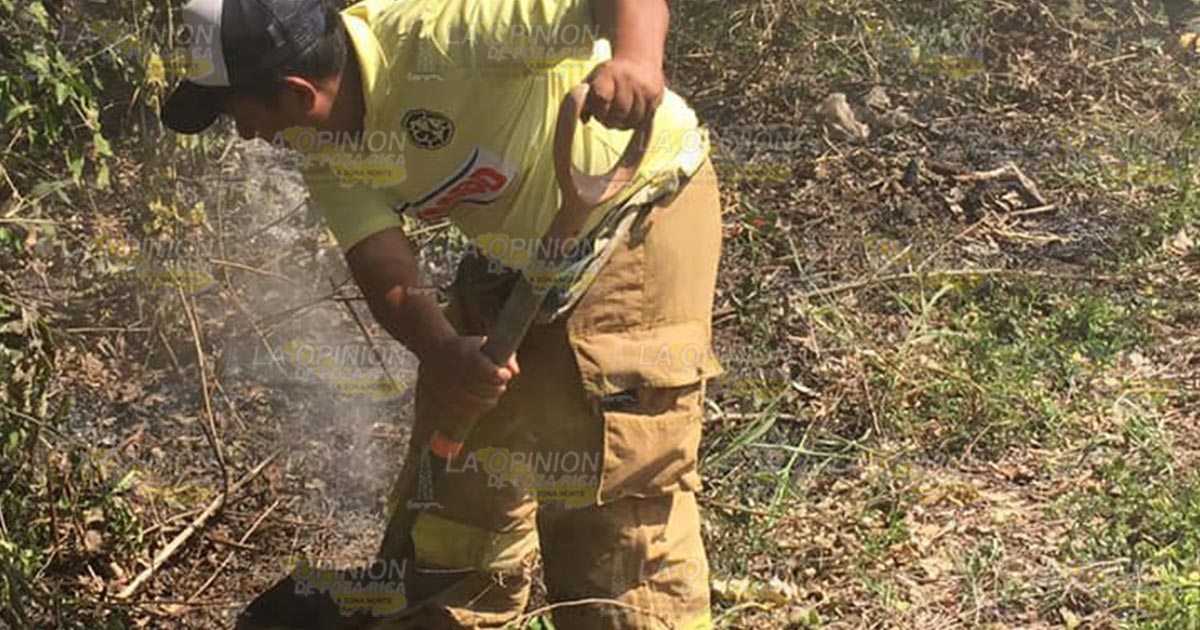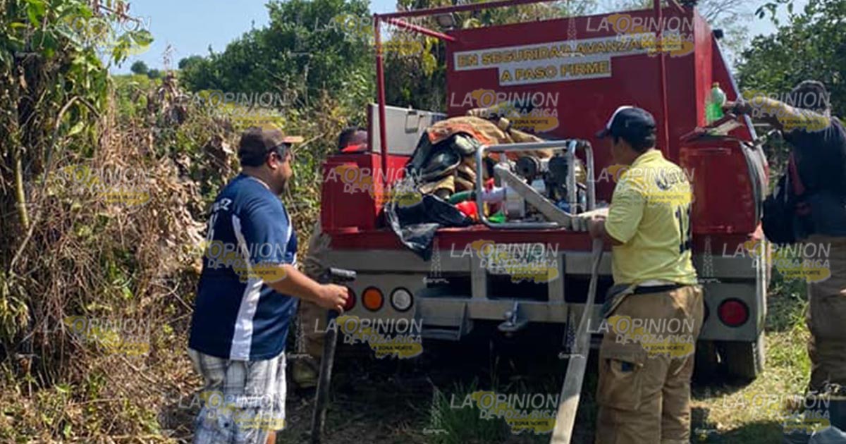 Tihuatlán, Ver.- Un incendio de pastizal en un área citrícola movilizó a los elementos del cuerpo de bomberos de la zona conurbada, quienes en coordinación con personal de Protección Civil sofocaron el fuego antes de que dañara los árboles frutales.