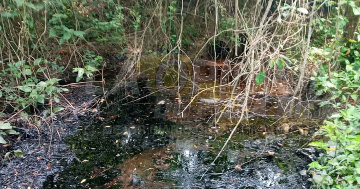 El escurrimiento de aceite proviene de un tanque de almacenamiento que se ubica en la zona, lo cual presuntamente se da a consecuencia del descuido del personal de Petróleos Mexicanos quienes dejan que se llene y se derrame el hidrocarburo el cual provienen de los pozos Cerro Azul 208, 209, 402, 404 que se ubica en el área del Ejido Mirador, así como del pozo Toteco 45 que se ubica en la parte del municipio de Tancoco.