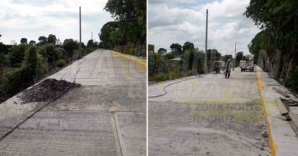 Espinal, Ver.- Vecinos de la comunidad de La Colonia Guadalupe de Hidalgo, contarán con alumbrado público sobre la carretera que el Ayuntamiento acaba de rehabilitar con concreto hidráulico, por lo que este día realizaron la instalación del cableado.