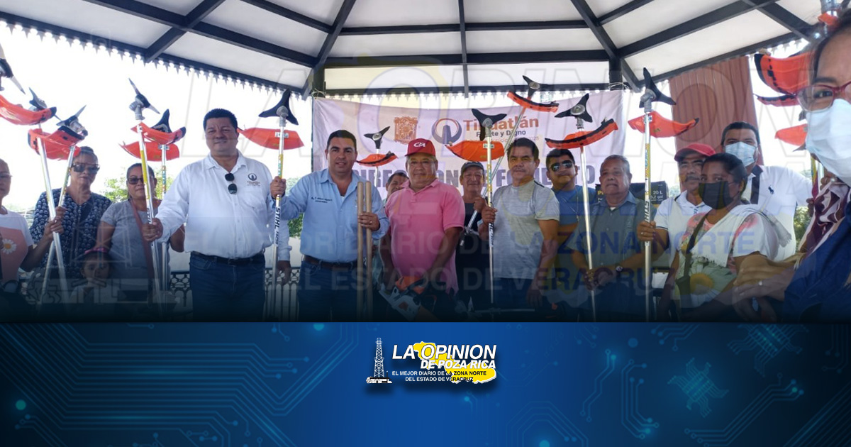 Tihuatlán, Ver.- En apoyo a productores agrícolas, el ayuntamiento que encabeza el alcalde Leobardo Gómez González gestionó e hizo entrega a bajo costo de insumos y herramientas útiles para el mantenimiento de las huertas.