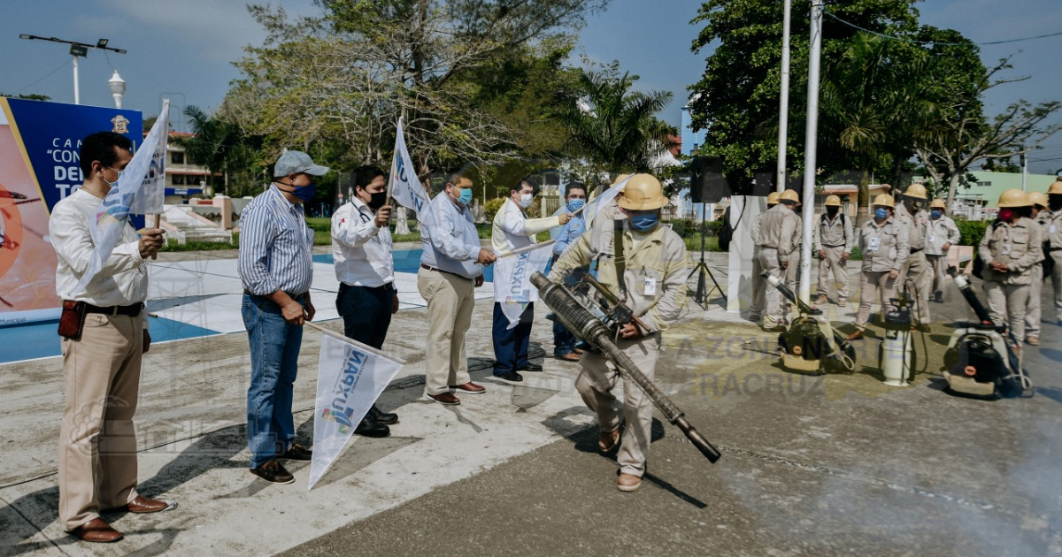 Tuxpan, Veracruz., El Ayuntamiento de Tuxpan que preside Juan Antonio Aguilar Mancha dio el banderazo de arranque de la campaña “Contra El Dengue, Todos Le Entramos” con la que coordinados con personal de la Jurisdicción Sanitaria, se pretende intensificar las labores de combate al mosco transmisor del Dengue, Zika y Chikungunya.