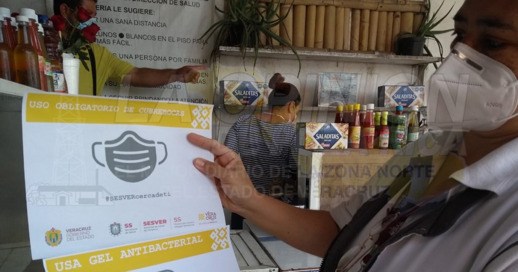 Tuxpan, Ver.- En vísperas de Semana Santa, con el propósito de garantizar la salud de los consumidores, personal de la Jurisdicción Sanitaria número 2 intensifica la promoción de medidas y acciones sanitarias ante la pandemia y ante la temporada de calor, brindando información, orientación y asesoría en establecimientos con venta de alimentos, principalmente.
