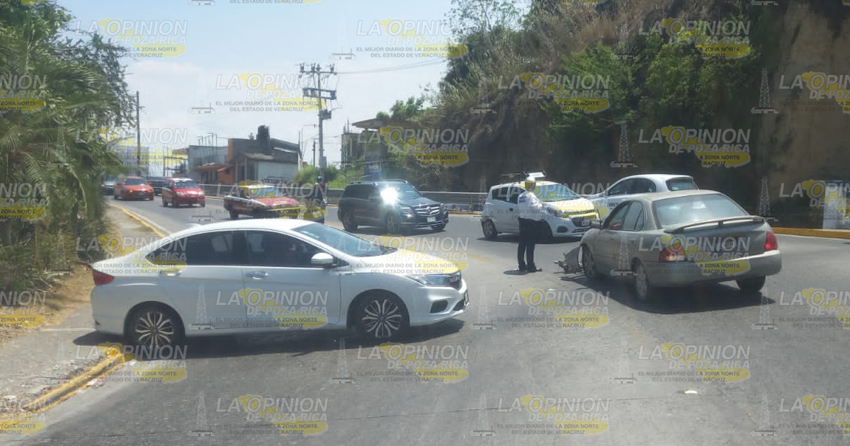 Tuxpan, Ver.- El choque de dos autos en uno de los accesos al puente Tuxpan deja como saldo cuantiosos daños materiales y por fortuna no hubo víctimas que lamentar; las unidades quedaron a disposición de las autoridades de vialidad.