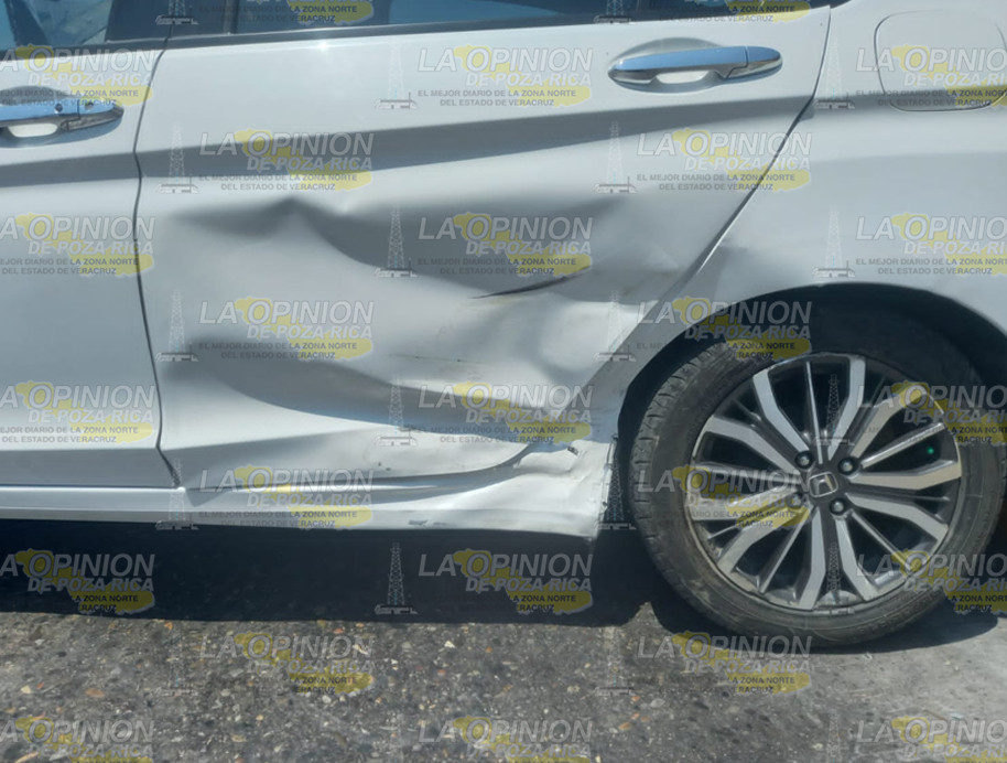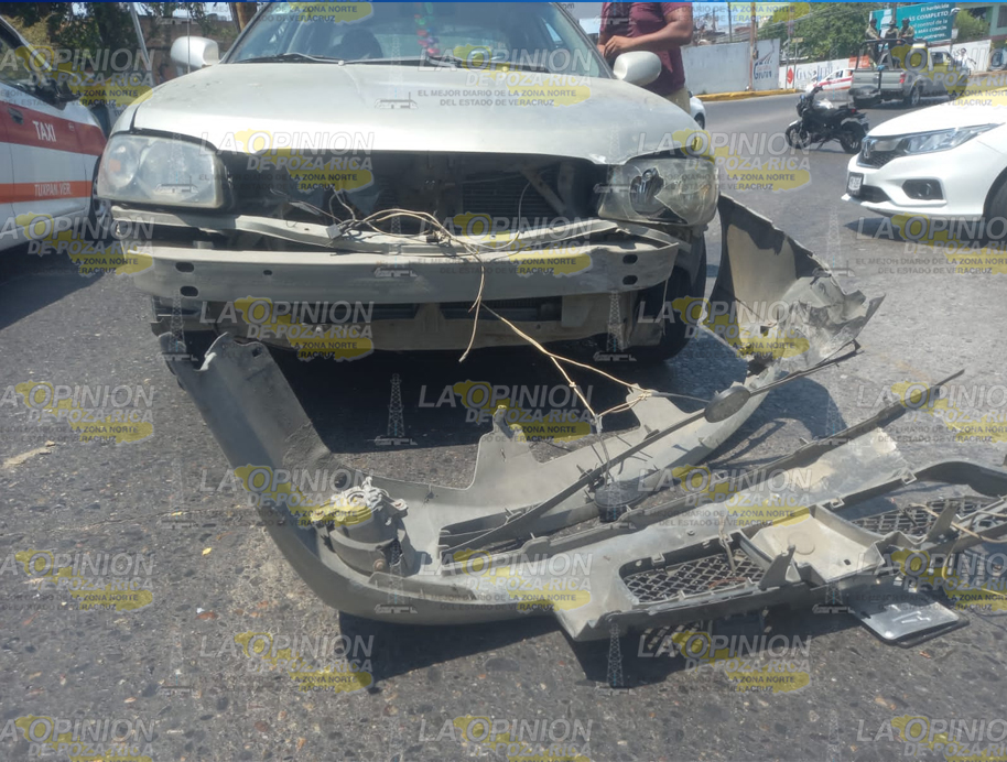 En el lugar colisionaron un automóvil Honda City, color blanco, con placas de circulación XYK028A del Estado, guiado por Ricardo M.I., de 20 años, vecino de la colonia Anáhuac, de esta ciudad y un coche Nissan Sentra, color gris, matrícula YUE879A del Estado, conducido por José Antonio F.G., de 21 años, con domicilio en el Infonavit Campo Real, de este puerto.