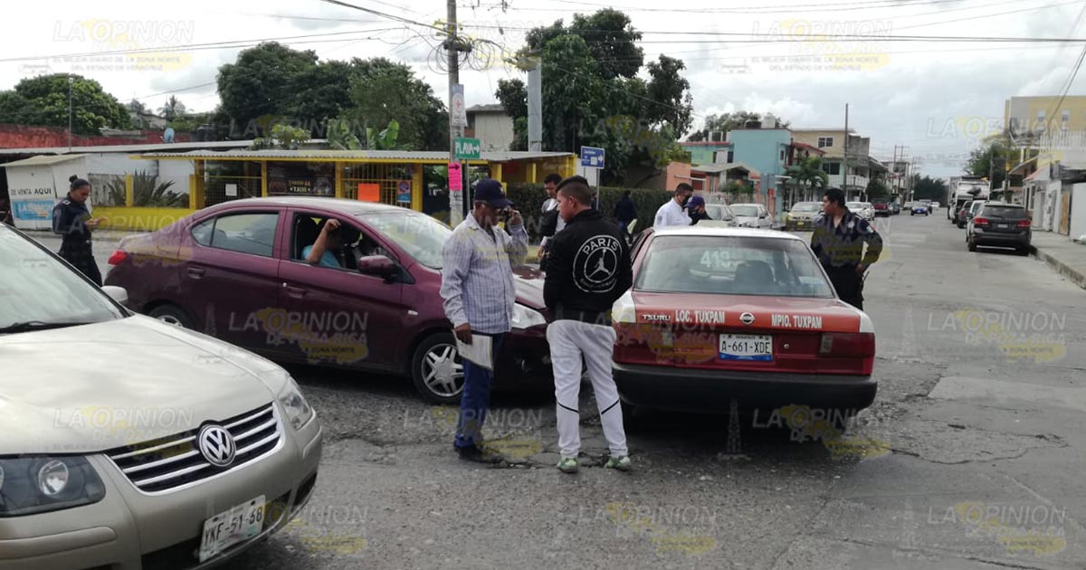 Tuxpan, Ver.- Ruletero que habría intentado ganar el paso a un automóvil particular terminó provocando un aparatoso accidente el cual dejó como saldo cuantiosos daños materiales.