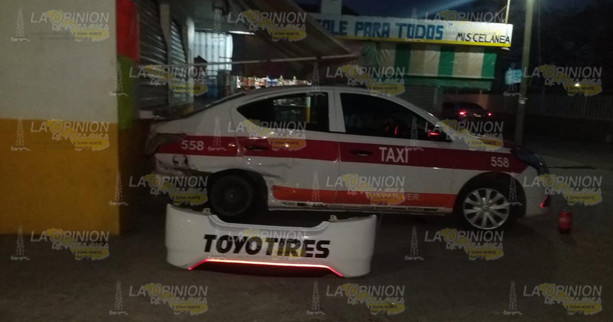 Tuxpan, Ver.- Taxista que intentó dar una vuelta en U sobre la carretera a la Barra Norte, de esta localidad provocó un aparatoso accidente dejando como saldo cuantiosos daños materiales por fortuna no hubo víctimas que lamentar.