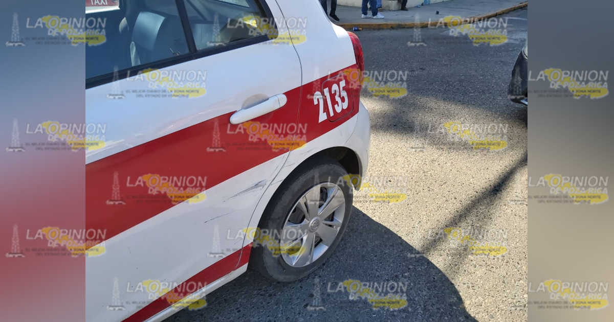 Poza Rica.- Pequeño accidente se dio en en la ciudad de Poza Rica, luego que el conductor de un automóvil particular quisiera ganarle el paso a un taxi al cual terminó impactandolo.
