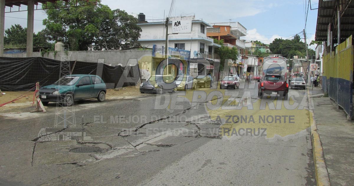Y es que gran parte de la rúa muestras enormes fracturas que amenazan con severos hundimientos, sobre todo porque es paso obligado de unidades de gran tonelaje, como autobuses, camiones y tráileres, que transitan de Tuxpan hacia el centro del país o hacia Tampico.