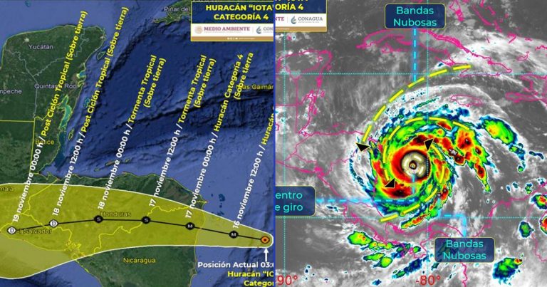 Ciudad de México.- El huracán Iota se intensificó a categoría 4 durante la madrugada de este domingo, por lo que sigue siendo vigilado mientras se acerca a las costas de Nicaragua, de acuerdo con lo informado por el Servicio Meteorológico Nacional (SMN). El fenómeno se localiza actualmente a 275 kilómetros al este-sureste de Cabo Gracias … Sigue leyendo Iota ya es huracán categoría 4