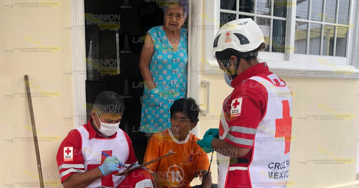Poza Rica, Ver.- Con alguna contusiones en piernas y brazos resultó Sotero N., jardinero que podaba árboles de Ficus en la banqueta de la calle Querétaro casi esquina con Sonora de la colonia México de la petrolera ciudad.