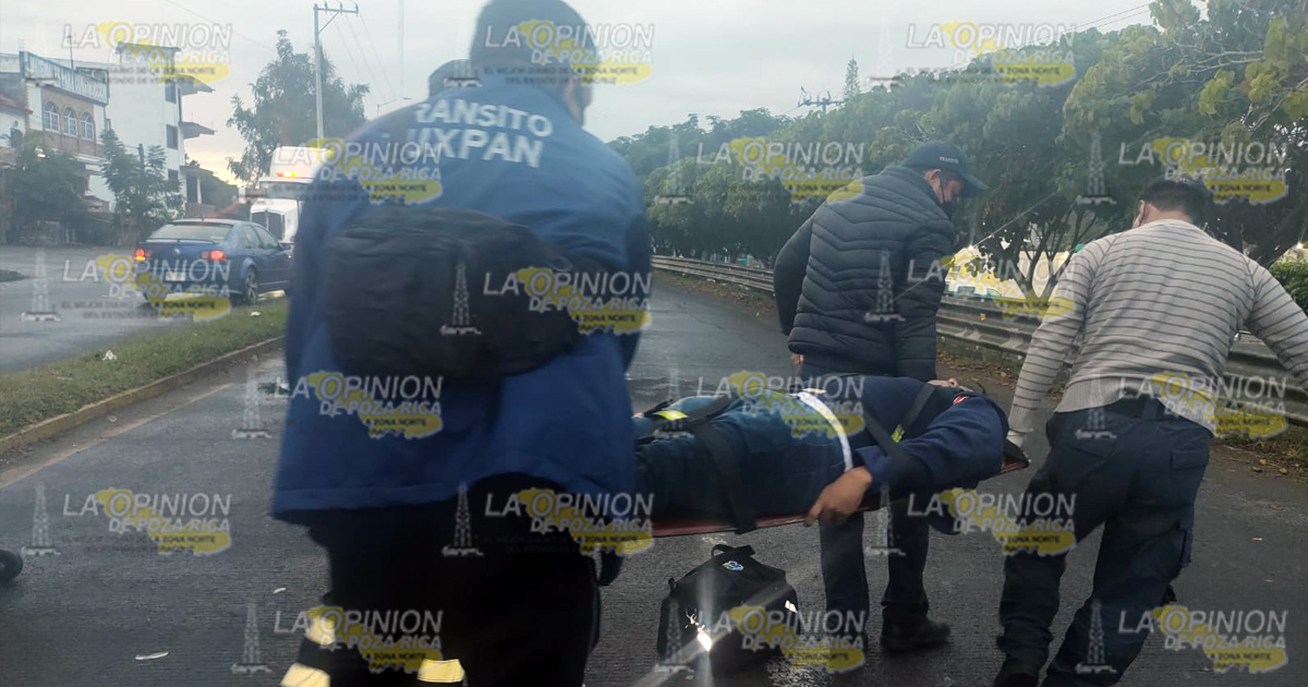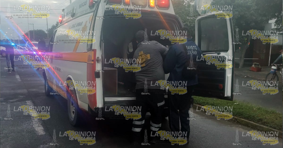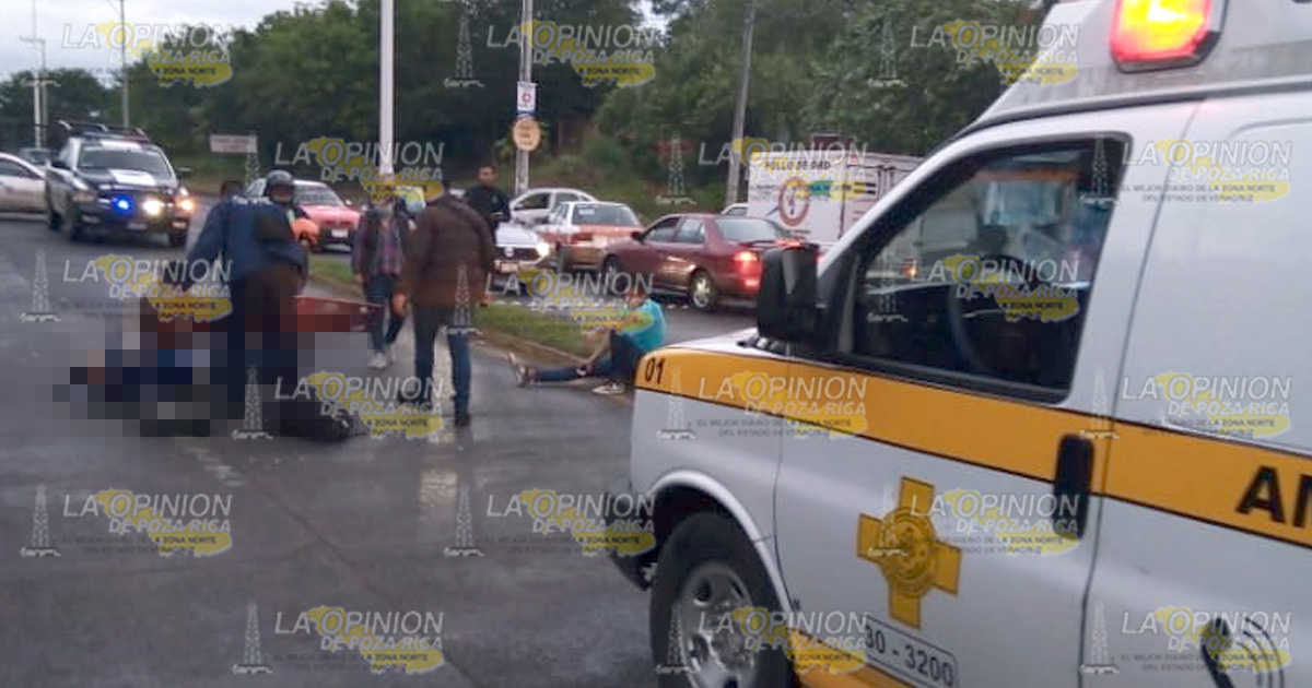 Tuxpan, Ver.- Par de jóvenes que viajaban a bordo de moto en la avenida Las Américas, de esta localidad sufrieron un aparatoso accidente y quedaron lesionados por lo que tuvieron que ser trasladados al Hospital Civil Emilio Alcázar para su atención médica.