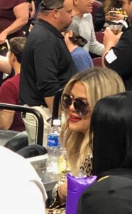 Otro testigo le dijo a E! News, «Ella fue escoltada por seguridad, llegó poco después de iniciado el primer cuarto pero se quedó hasta el final. Se sentó en el área privada».