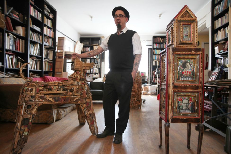 Y más tarde, cuando se convirtió en «un animal más doméstico», comenzó a hacer arte de ensamblaje, recogiendo objetos abandonados y pegándolos en esculturas.