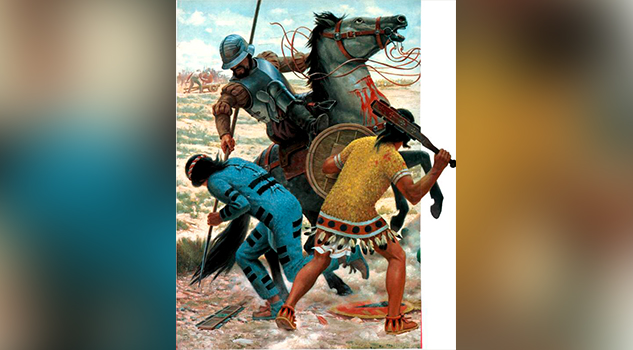 El hombre blanco era en verdad un luchador formidable. Mi “tata” lo sabía, y por eso dejó de estar a la defensiva en cuanto tuvo oportunidad. En un momento en que el invasor giró sobre su talón y dio una sorpresiva media vuelta para sorprender a mi padre, este giró sobre el suelo, se puso detrás de él, y con toda la fuerza de la que fue capaz, descargó un furioso golpe de maqahuitl sobre la espalda de su adversario.