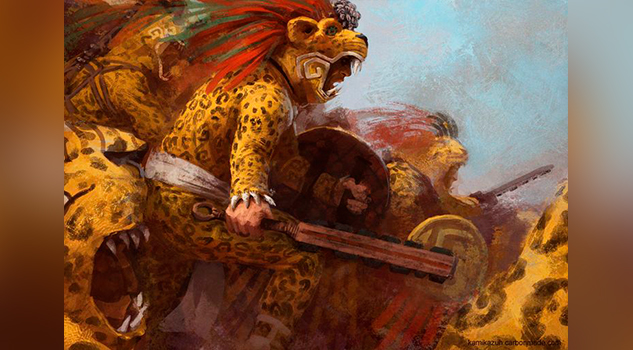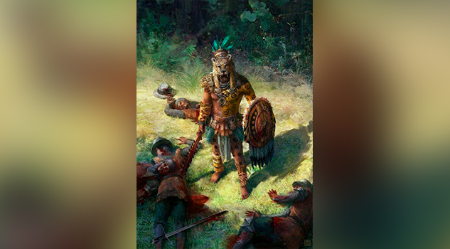 Era mi padre, el campeón Ocelopilli Tleyotzin, quién se disponía a hacer frente al temible demonio blanco. El sujeto barbado sonrió al verlo. Quizá creyó que era demasiado joven como para enfrentarlo. Si fue eso, puedo asegurar sin lugar a dudas que estaba equivocado. Mi padre ya había visto llegar la primavera de Xipe Totec 30 veces en su vida, además había participado en más de 20 guerras floridas, donde en una misma campaña capturó a doce esclavos, todos ellos nobles. Fue tal la magnitud de aquella hazaña, que logró elevarlo por fin al rango de Campeón de la orden del Jaguar.