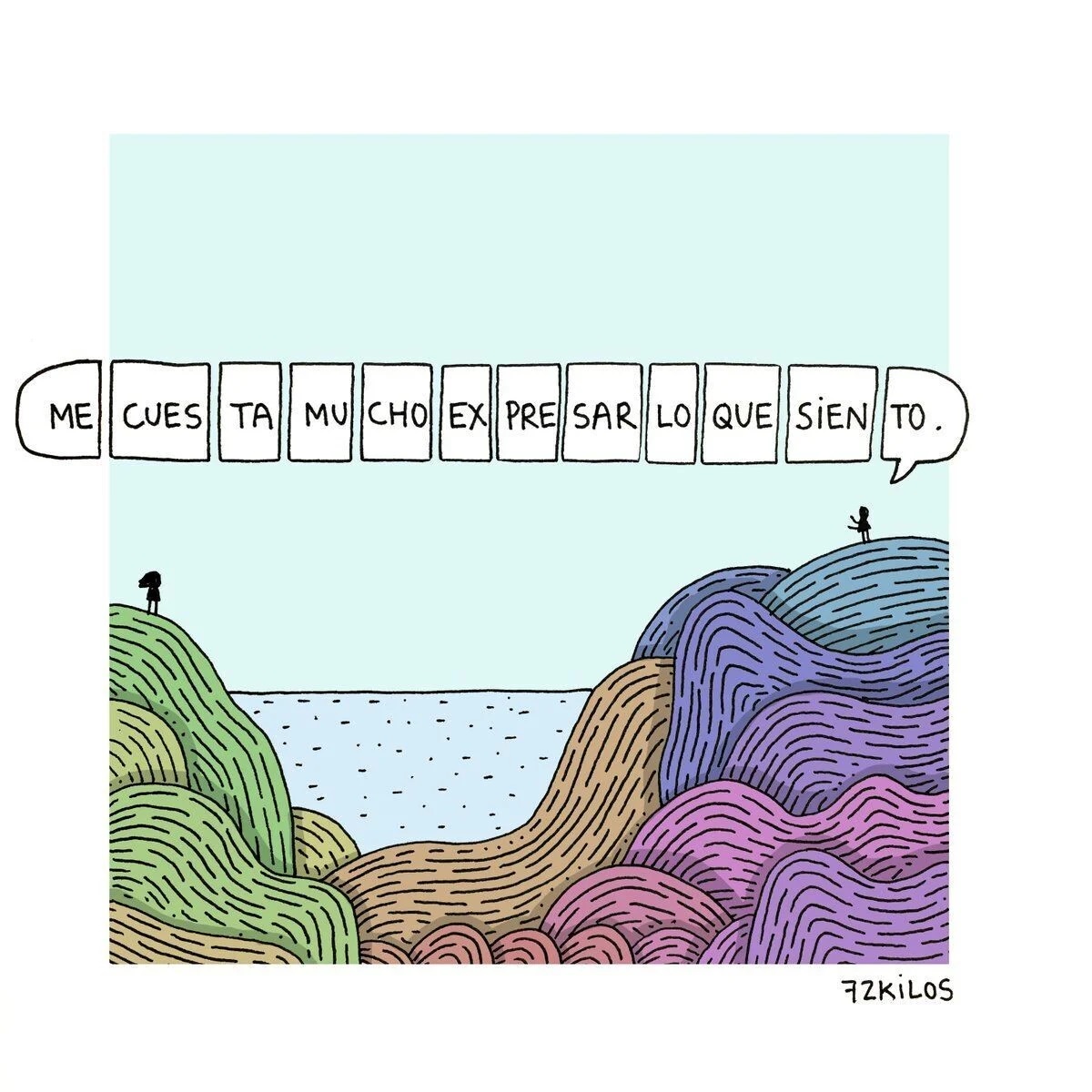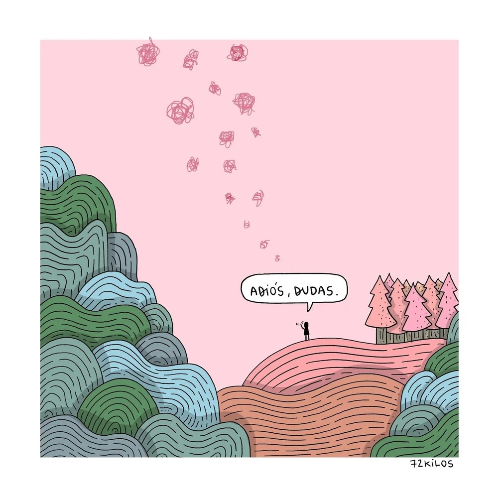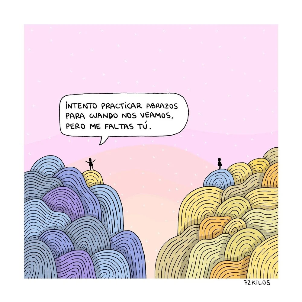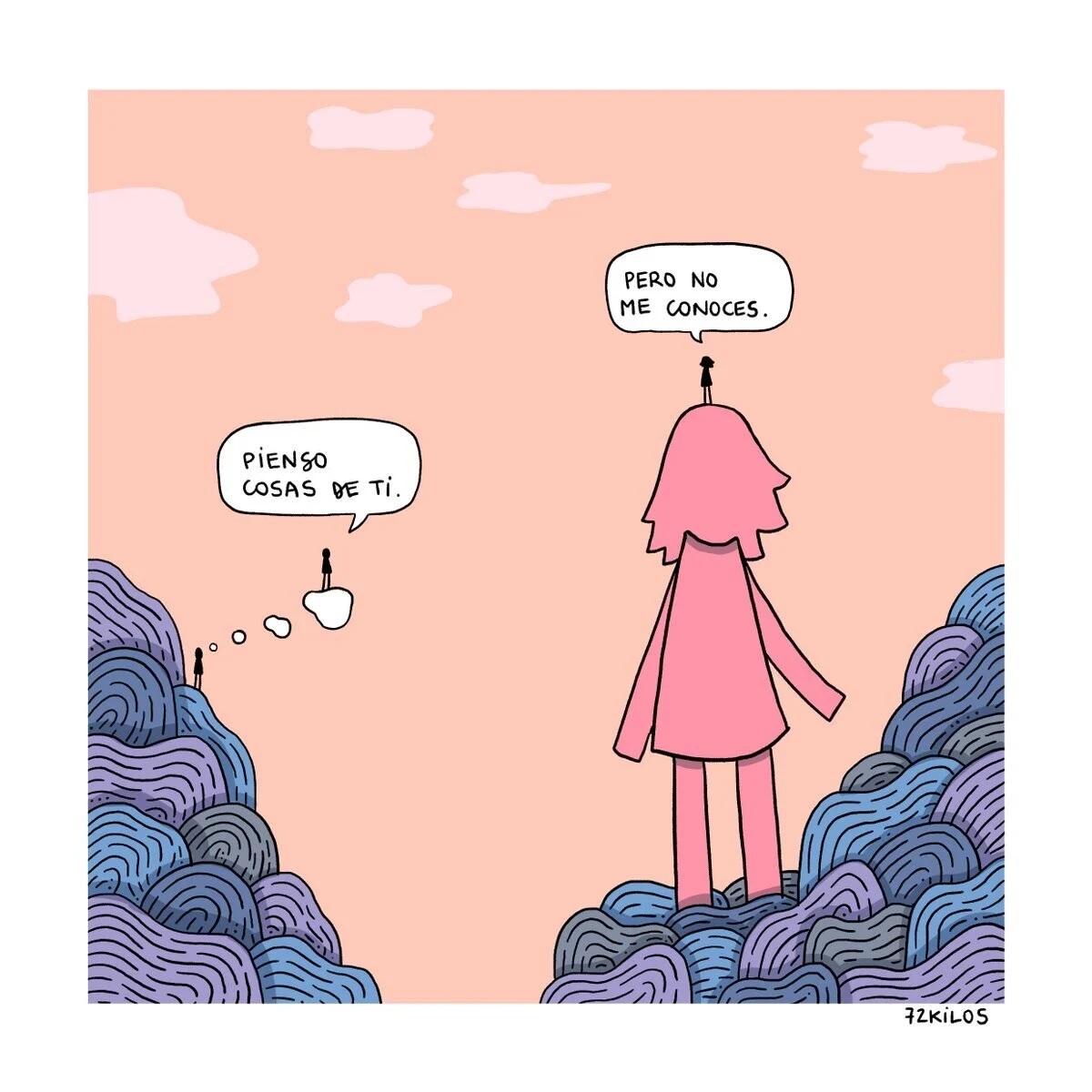 No es consciente de la magnitud de su número de seguidores actual, de hecho, intenta no pensarlo y tampoco siente la presión de hacer algo que guste a la gente, probablemente en estas dos cosas esté la clave de su éxito. 72 kilos dibuja lo que siente y lo que piensa y tiene el don de decir todo con poco.
