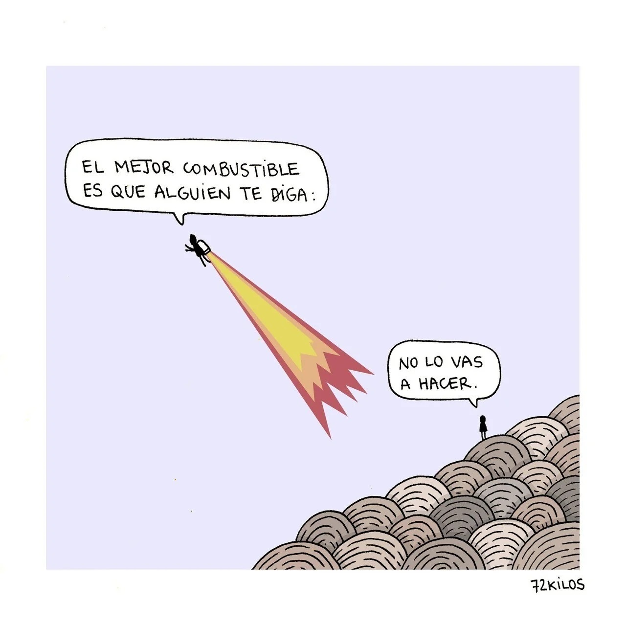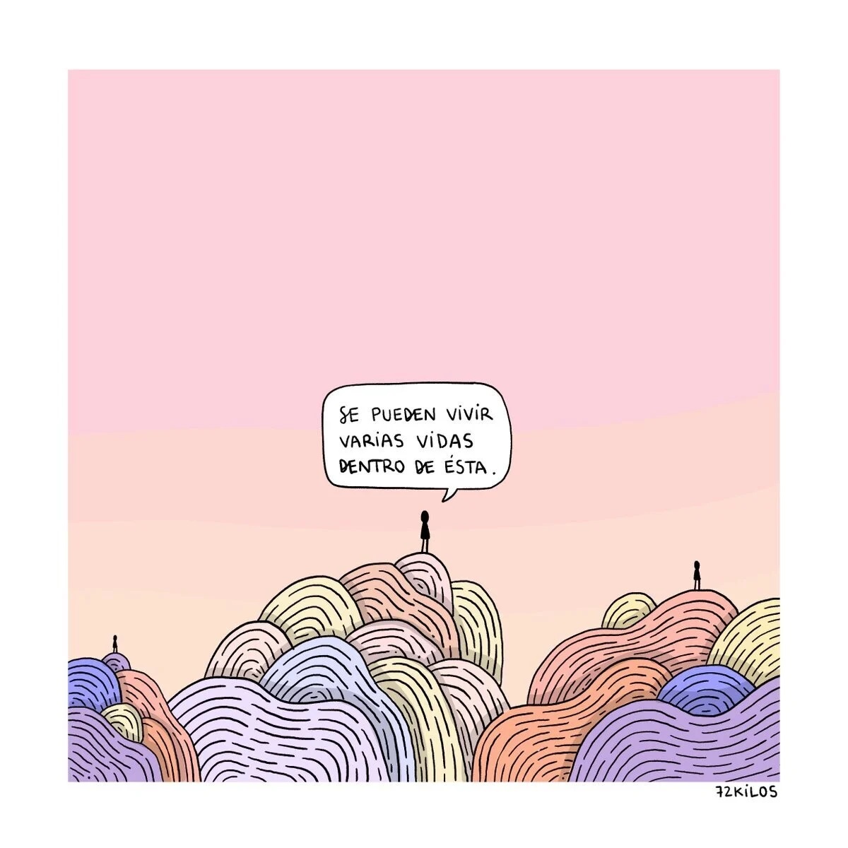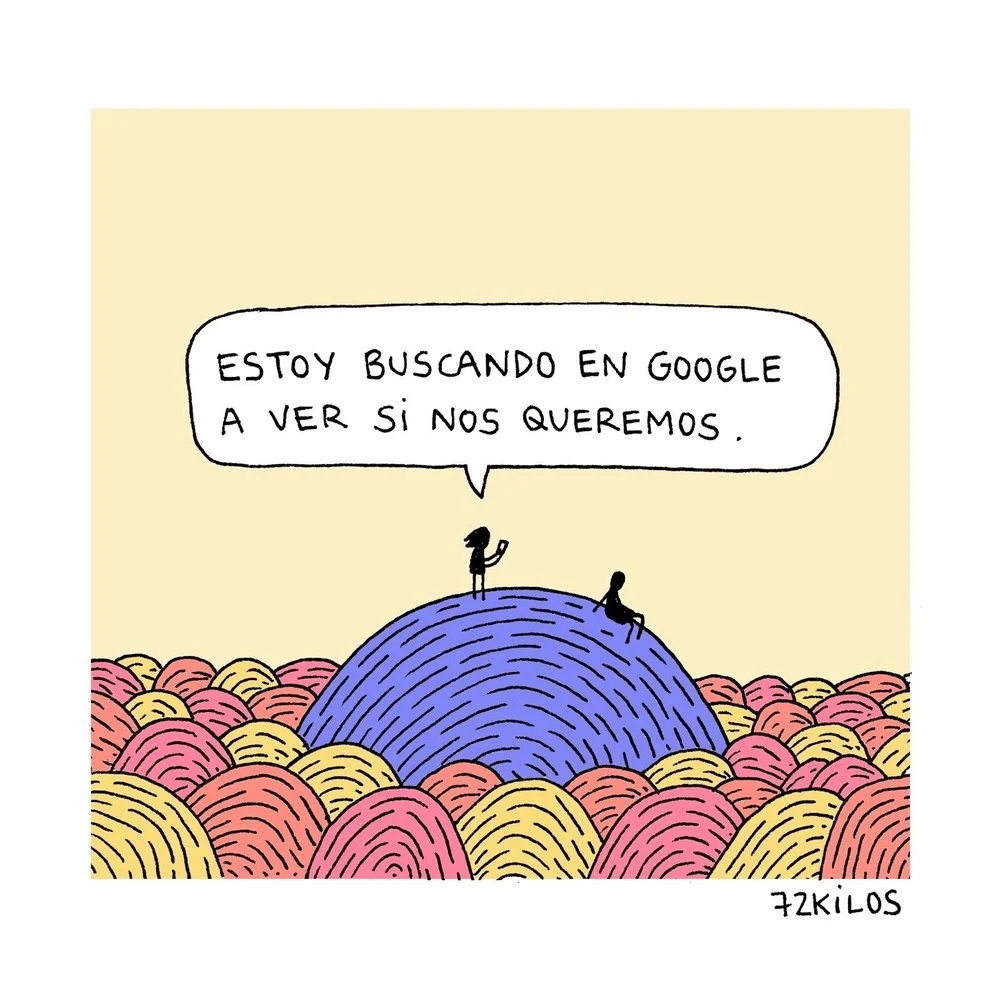No es consciente de la magnitud de su número de seguidores actual, de hecho, intenta no pensarlo y tampoco siente la presión de hacer algo que guste a la gente, probablemente en estas dos cosas esté la clave de su éxito. 72 kilos dibuja lo que siente y lo que piensa y tiene el don de decir todo con poco.