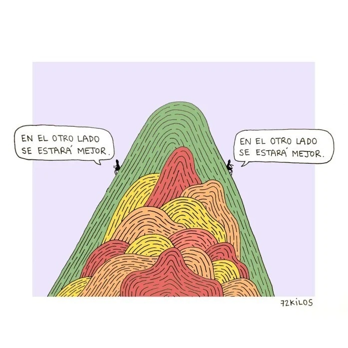 Los dibujos de 72 kilos acostumbran a ser el empujón que necesitabas en ese momento puntual, la reflexión que te llega por casualidad y hace que las cosas de repente tengan sentido o el cambio de actitud que tiene la capacidad de mejorar tu humor, terapeúticos y honestos sin caer en la ñoñería.