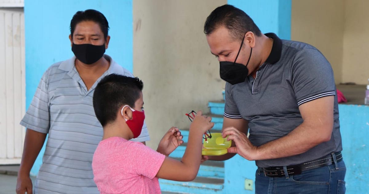 Tihuatlán, Ver.- Indispensables para poder continuar con las clases en línea sin que la vista tenga que sufrir daños por la radiación de teléfonos celulares o computadoras, decenas de lentes fueron entregados de manera gratuita por el alcalde Raúl Hernández Gallardo a niños y jóvenes de todos los niveles educativos de varias comunidades del municipio.