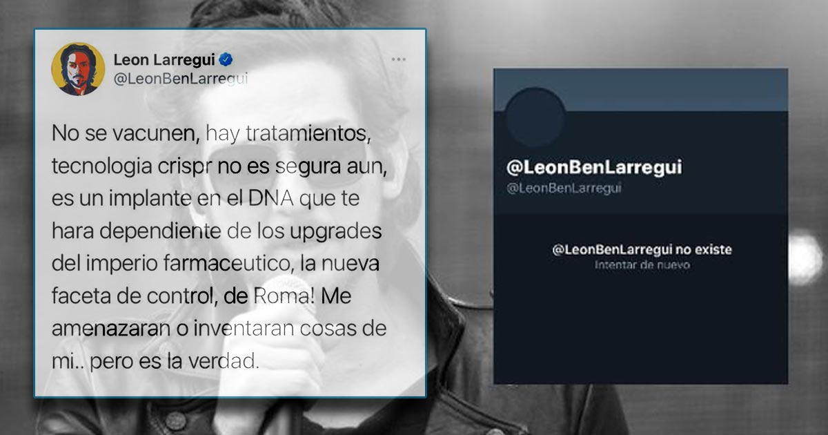 León Larregui se suma a la lista de famosos que han sido eliminados de Twitter por sus polémicas declaraciones alrededor del coronavirus Covid-19.