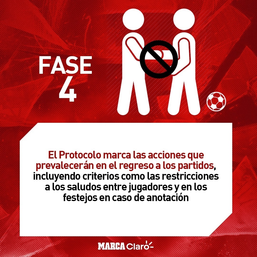La Liga MX informará sobre la evolución de las cuatro fases. Durante todas las etapas, el protocolo contempla la aplicación constante de pruebas y establece las medidas a seguir en cada caso.