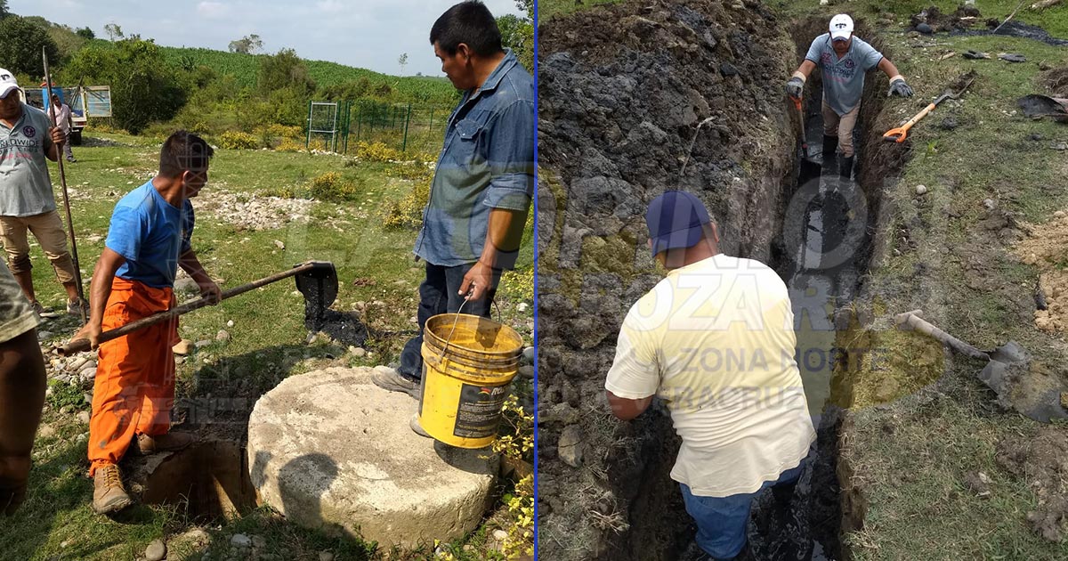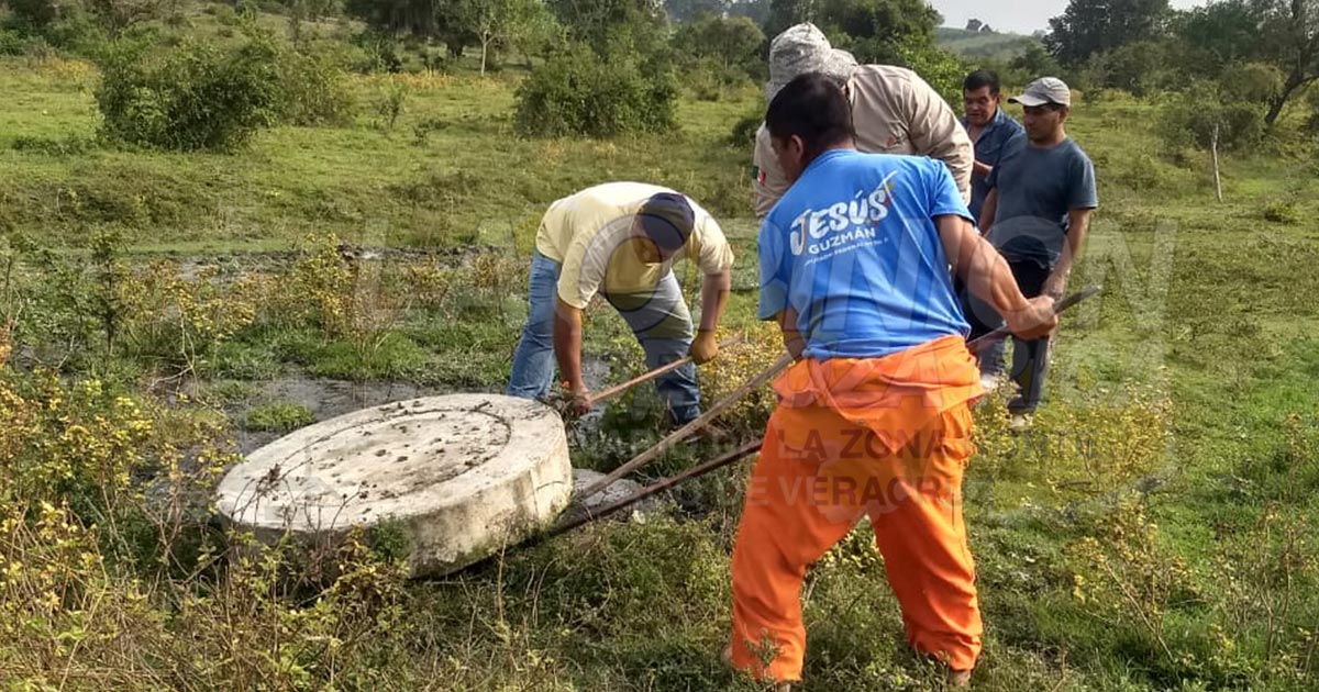 Espinal, Ver. – Autoridades del ayuntamiento reparan tiradero de aguas negras en un predio de la comunidad de San Leoncio Jamaya.