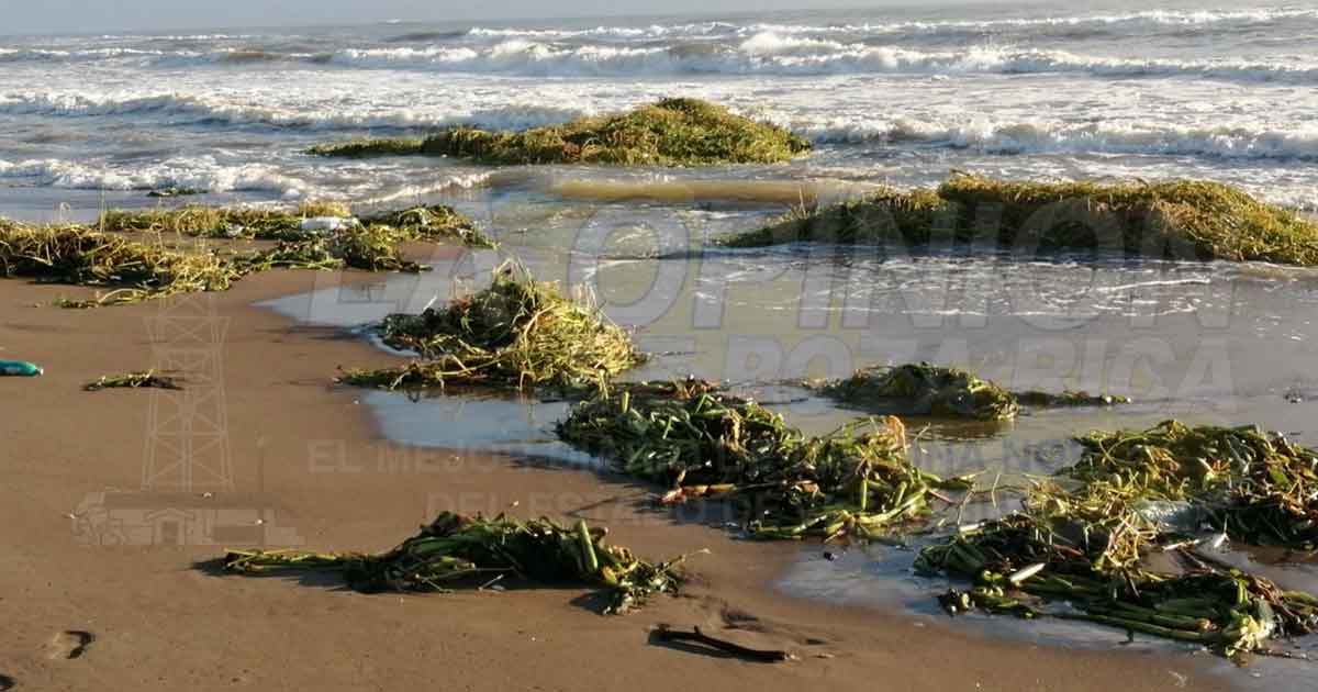 Tecolutla, Ver.- Prácticamente invadidas por lirio acuático, es como lucen las playas tecolutleñas, ya que esta plaga, continúa contaminando río y mar, lo cual sucede desde el pasado 2019.