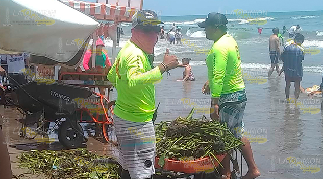 Hoy guardavidas voluntarios y elementos de Protección Civil se dieron a la tarea de retirar esta planta, la cual llegó hasta las playas, evitando que el turismo se introduzca en las mismas; de igual forma, ha sido de asombro para los visitantes observar esta planta de agua dulce, la cual llega hasta las playas debido a que el río desemboca en ella.