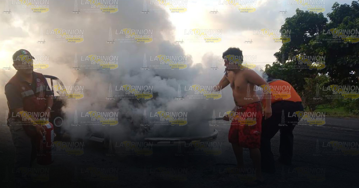 Gutiérrez Zamora, Ver.- Elementos de bomberos de este municipio se movilizaron rápidamente ante el llamado de emergencia de varios automovilistas que reportaban el incendio de un vehículo.