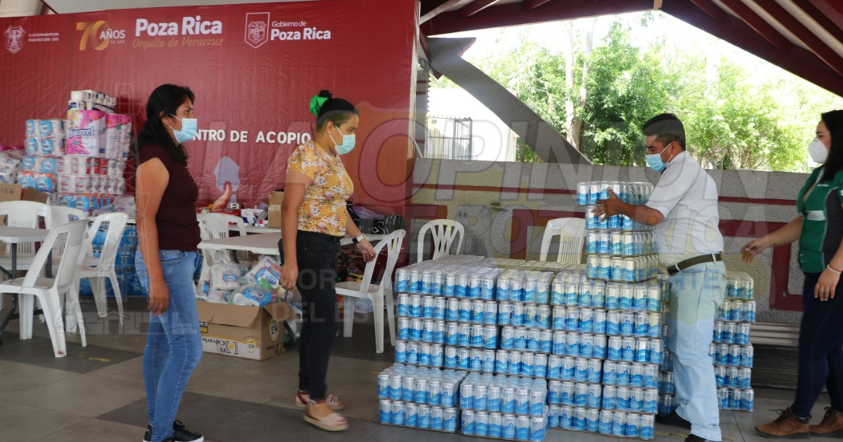 Poza Rica, Ver.- A unas cuantas horas de que concluya el plazo para el cierre de recepción de apoyos para damnificados a través del Centro de Acopio instalado en la Pérgola del Parque Benito Juárez, ciudadanos de otros municipios, continúan realizando aportaciones para respaldar la acción del Gobierno de Poza Rica de llevar ayuda a las familias damnificadas por el paso del Huracán Grace.