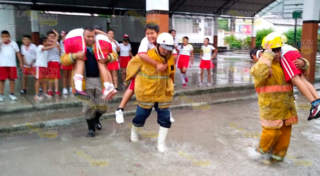 Algunas aulas de la escuela primaria María Gutiérrez quedaron llenas de lodo, alumnos que se encontraban realizando actividades en el auditorio de la institución quedaron atrapados y fue necesario que paramédicos los auxiliaran y cargándolos los llevaran a una zona segura.
