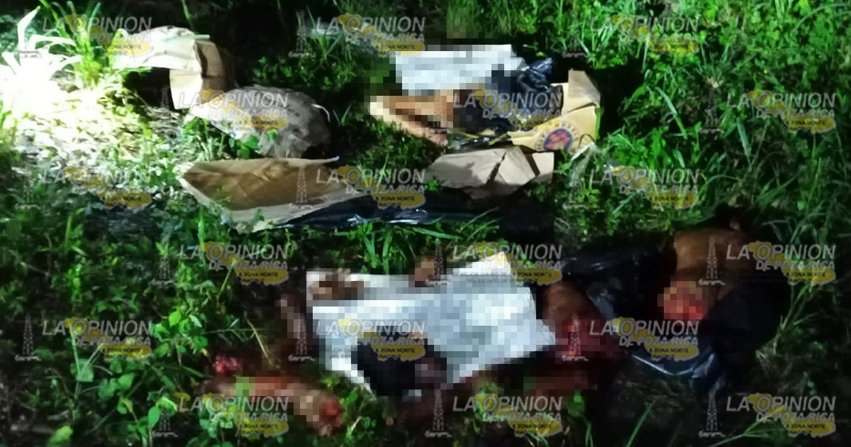 Papantla, Ver.- Macabro hallazgo realizaron personas que transitaban sobre la carretera estatal El Chote-Espinal a la altura del rancho «Los Pipos» ubicado en las inmediaciones de la comunidad San Lorenzo y Anexos, donde fueron encontrados dos cuerpos desmembrados.