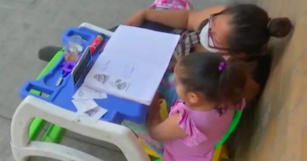 “Ahora sí, que aquí en la vía pública, aquí exactamente me siento con mi mesita y toma su clase”, dijo Jessica Castillo, madre de la niña.