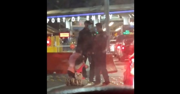 Madre e hija se hincan ante agente migratorio para que las deje cruzar a EU