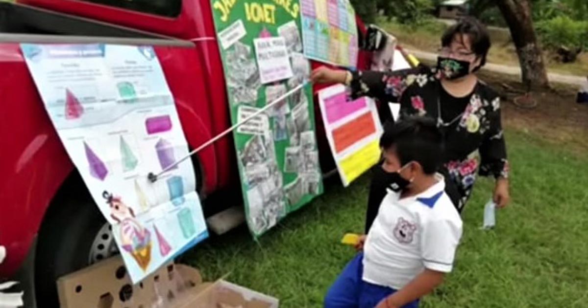 Se trata de la estrategia que denominó Aula Móvil Multigrado (AMM), con lo que convirtió su vehículo en un salón de clases rodante para visitar a cada uno de los alumnos de la escuela primaria Jaime Torres Bodet de la comunidad El Edén, de este municipio, donde ella es directora.