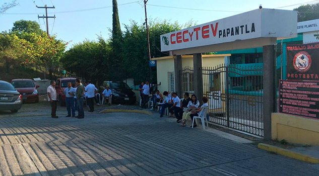 Papantla, Ver.- Por enésima ocasión docentes adheridos a la Confederación de Sindicatos del CECYTEV se manifestaron e impidieron las clases en las instalaciones del Cecytev de Papantla, por lo tanto 700 alumnos se quedaron sin clases, los maestros exigen el respeto al contrato colectivo.