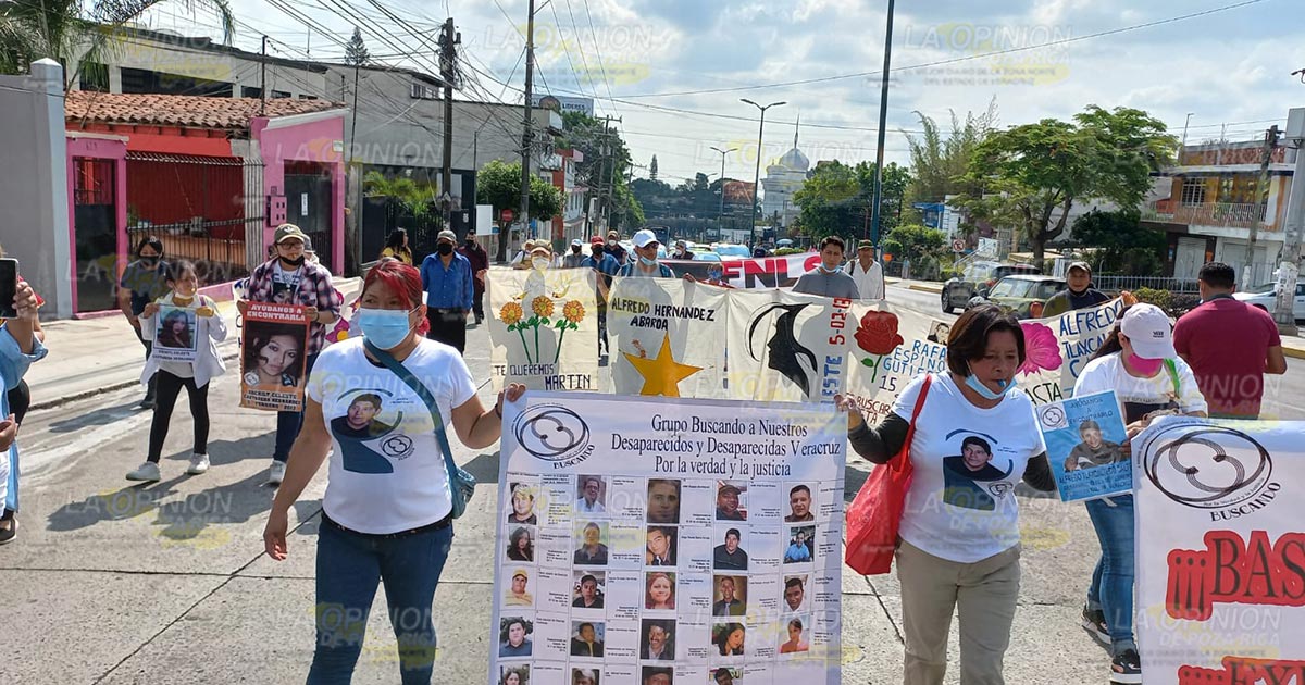 Xalapa, Ver.- Colectivos de personas desaparecidas protestaron a pie, como cada 10 de Mayo, para demandar la localización con vida de sus familiares.