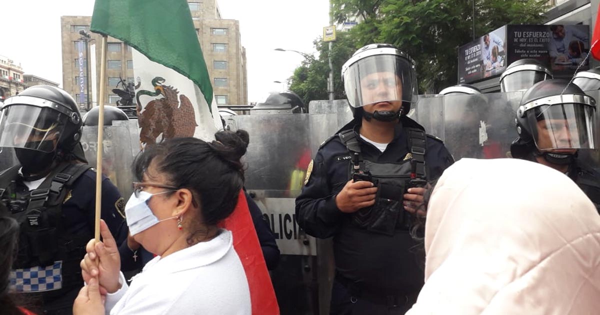 CDMX.- Integrantes del Frente Nacional Anti AMLO (Frena) y del Congreso Nacional de Ciudadano de la Ciudad de México se manifestaron en contra del gobierno del presidente Andrés Manuel López Obrador.