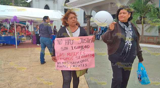 Tuxpan, Ver.- Un grupo mínimo de mujeres tuxpeñas marcharon por las calles de la ciudad en el marco del Día Internacional de la Mujer para demandar mayor seguridad por los hechos de las últimas semanas en las que la violencia hacia la mujer está latente.
